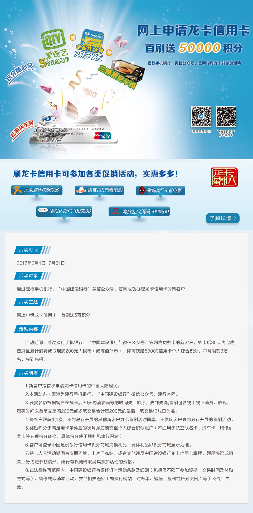 网上申请龙卡信用卡,首刷送5万积分
