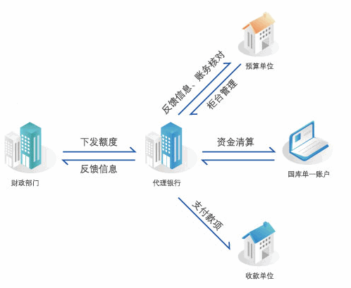 2.财政部门资金支付:代理银行接收到财政部门支付申请后为财政部门办理对外支付。