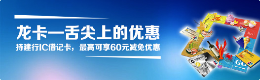 龙卡—舌尖上的优惠,持建行IC借记卡,最高可享60元减免优惠
